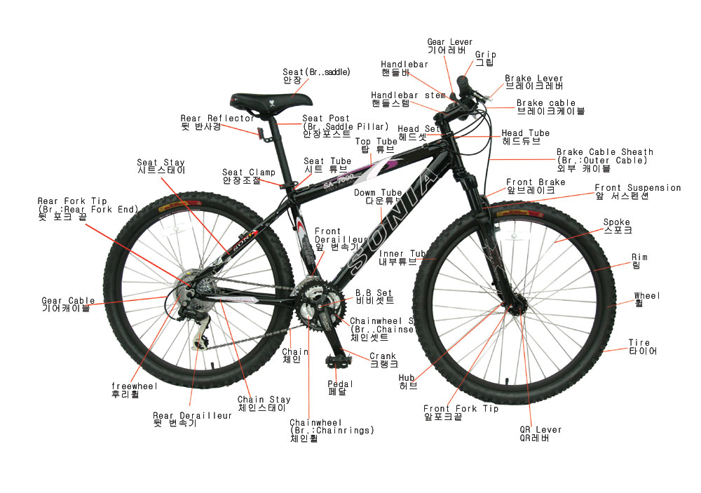 자전거 일부 명칭을 알아 두면 문제가 발생했을 때 쉽게 설명할 수가 있다.